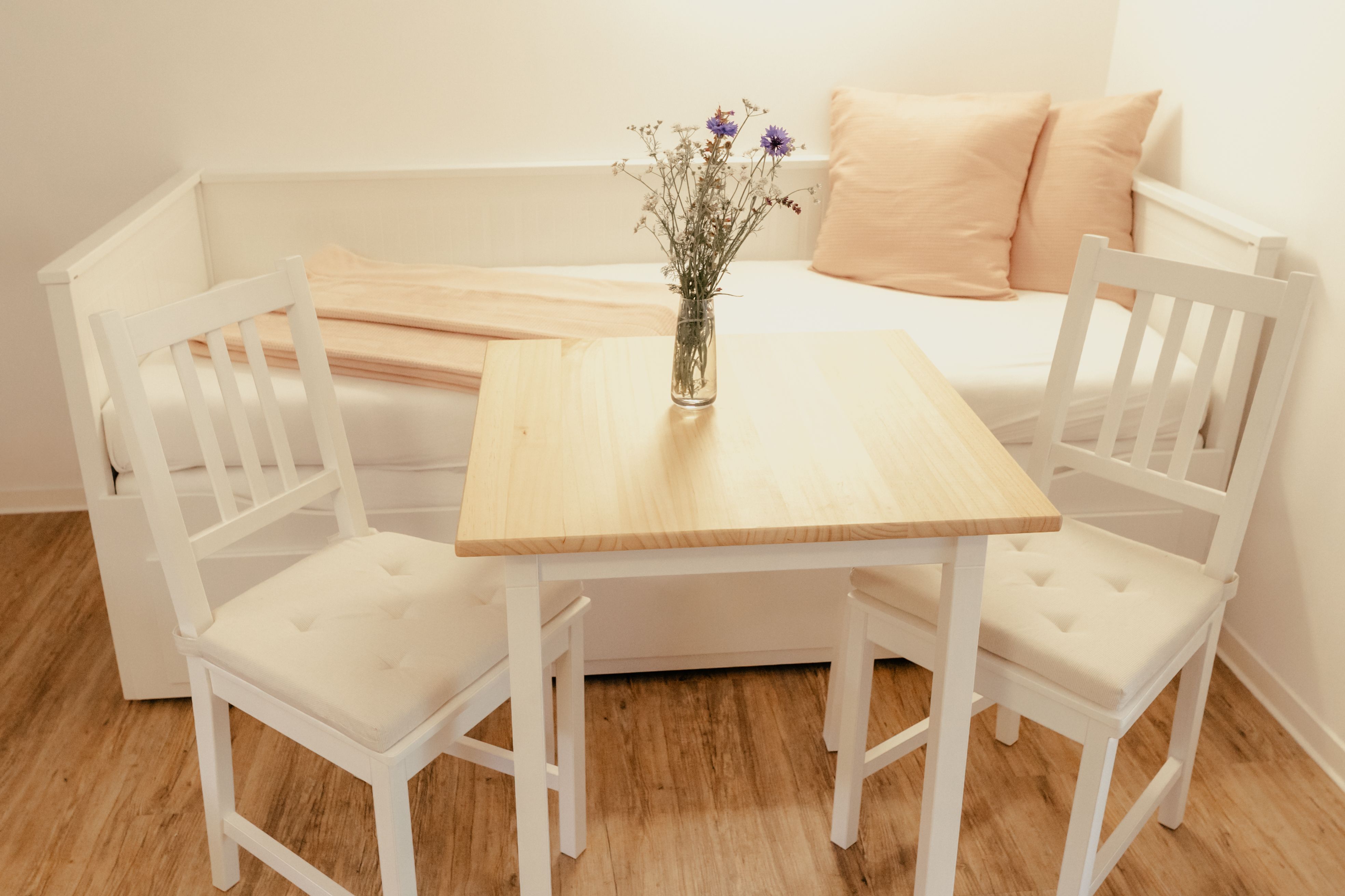 Ein besonderes Plus ist die kleine, gut ausgestattete Küchenzeile mit Kühlschrank, Spüle und Kochplatte. So können Sie sich unkompliziert selbst versorgen, perfekt für Kaffee am Morgen oder einen schnellen Snack zwischendurch.