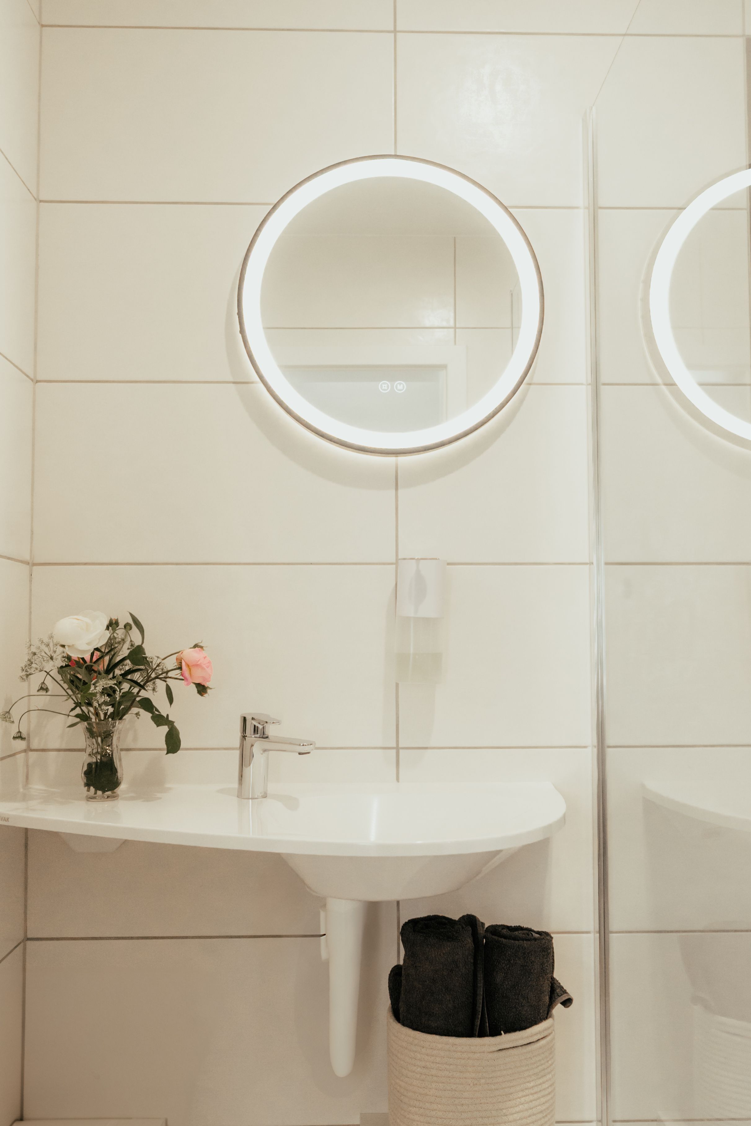 Ein eigenes, modern ausgestattetes Bad mit Dusche, Waschbecken und WC gehört ebenfalls zum Zimmer. Handtücher und ein Haartrockner stehen für Sie bereit.